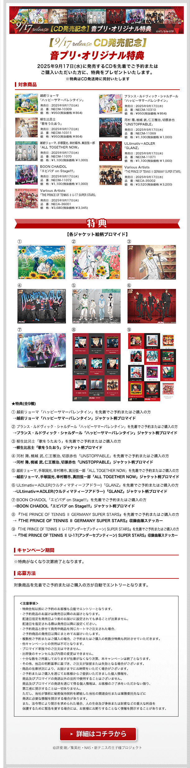 - 25/07/31 Various Artists『THE PRINCE OF TENNIS II GERMANY SUPER STARS』販売開始