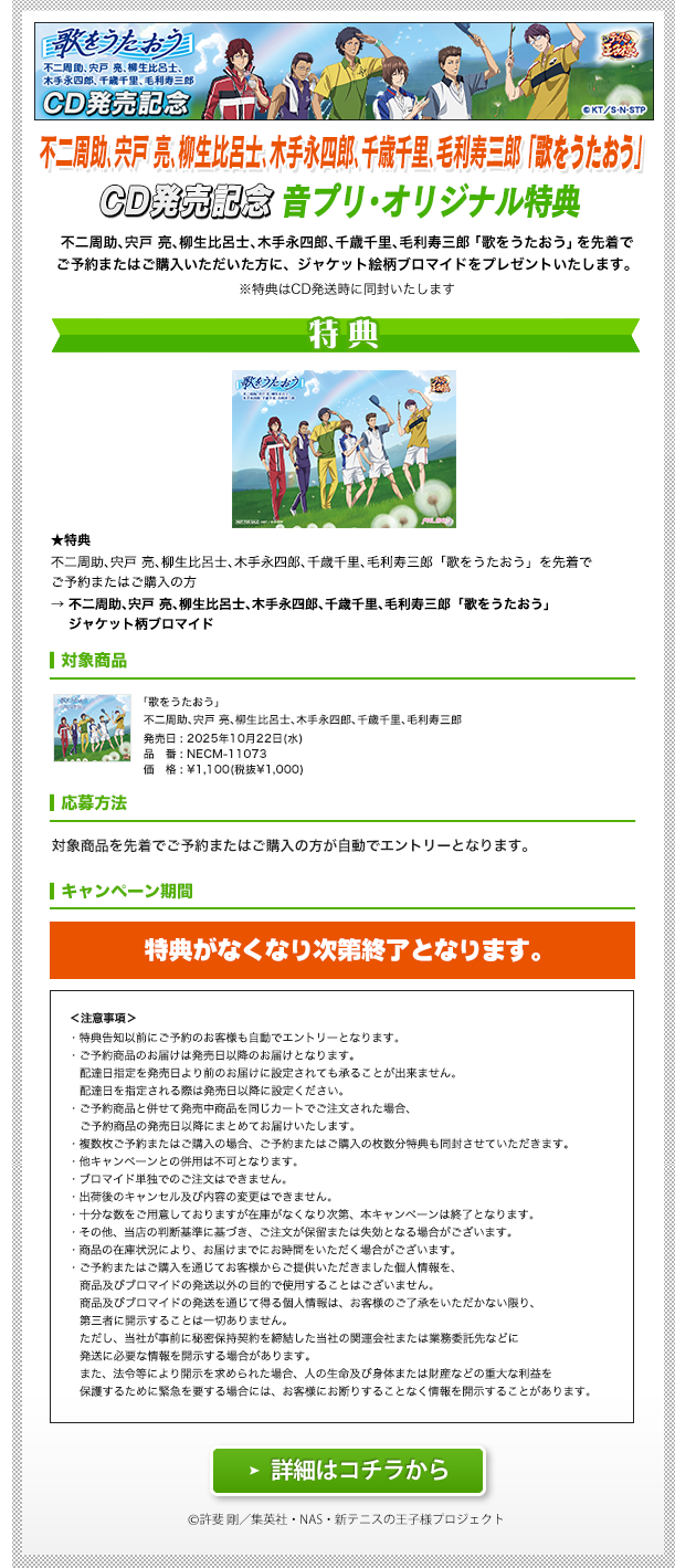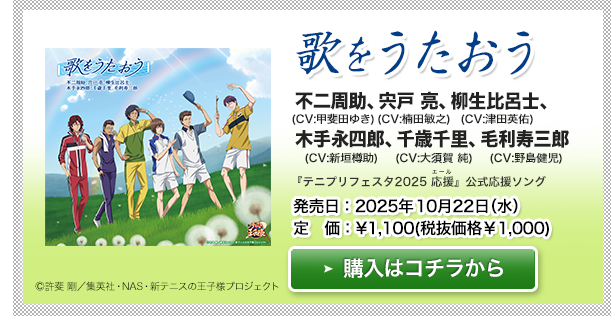 - 25/07/31 越前リョーマ, 手塚国光, 幸村精市, 真田弦一郎「ALL TOGETHER NOW」販売開始