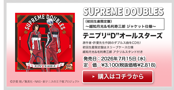 - 26/04/23 「SUPREME DOUBLES〔初回生産限定盤〕~越知月光&毛利寿三郎 ジャケット仕様~」テニプリ“D”オールスターズ 販売開始