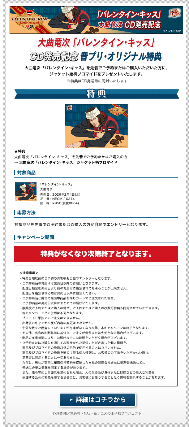 - 26/01/05 「バレンタイン・キッス」大曲竜次 販売開始